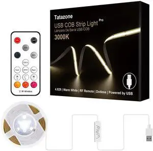 5V USB COB Led Strip Light with RF Remote, 4.92ft 3000K CRI93+ Dimmable USB Powered COB Led Light Strip, Indoor COB Led Light for Cabinet, TV, Camping, Monitor, Showcase, Motorhome