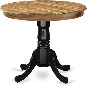 AMT-WBK-TP Antique Dining Table Made of Rubber Wood offering Walnut Finish Table Top, 36 Inch Round, Wirebrushed Black Pedestal