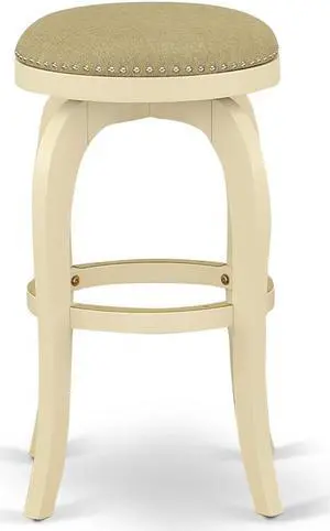 BFS030-202 Bedford Swivel Backless Barstool 30'' Seat Height With Linen White Leg And Pu Leather Sandalwood Color