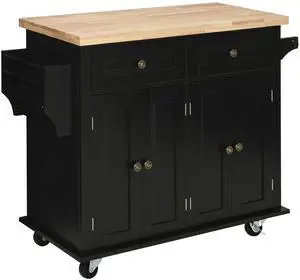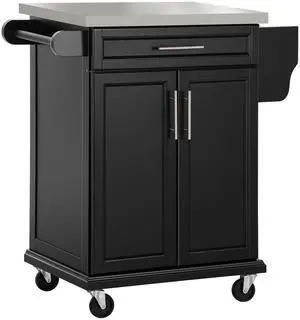 Kitchen Island on Wheels, Rolling Kitchen Cart with Stainless Steel Countertop, Drawer, Towel Rack and Spice Rack, Utility Storage Trolley, Black