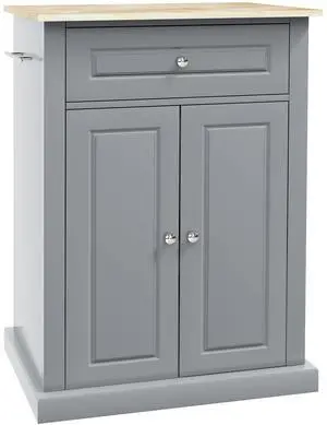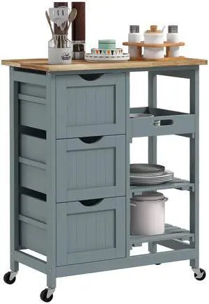 SlickBlue Kitchen Island Cart on Wheels with Rubber Wood Top and 3 Drawersand Removable Tray-Gray