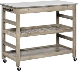SlickBlue Modern Rolling Kitchen Cart Island with Wooden Top-Brown
