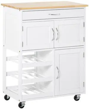 Bar Cart Rolling Kitchen Island on Wheels with Wine Rack