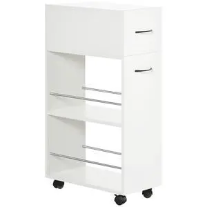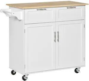 Rolling Kitchen Island Cart, Bar Serving Cart with Drawers, White