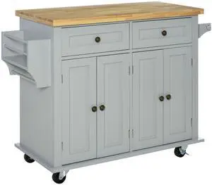 Kitchen Island on Wheels, Rolling Cart with Rubberwood Top, Spice Rack, Towel Rack and Drawers for Dining Room, Grey