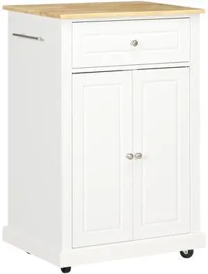 Rolling Kitchen Island Cart, Portable Serving Trolley Table with Drawer, Adjustable Shelf and 2 Towel Racks, Cream White