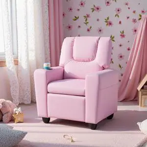 Costway Kids Recliner Armchair Children's Furniture Sofa Seat Couch Chair w/Cup Holder Pink