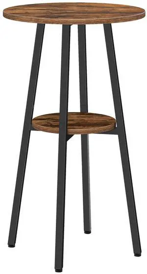 HOOBRO Bar Table, Round Pub Table, 2-Tier with Storage, 37.4" High Top for Small Spaces, with Top Particleboard for Kitchen, Easy to Assemble, Rustic Brown BF55BT01