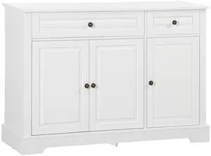 Coffee Bar Cabinet, Sideboard Buffet Cabinet, Kitchen Cabinet with 4 Drawers and Slatted Bottom Shelf for Kitchen, Living Room, White