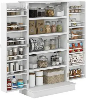 Kitchen Pantry Storage Cabinet w/ 5-tier Shelving, 12 Spice Racks