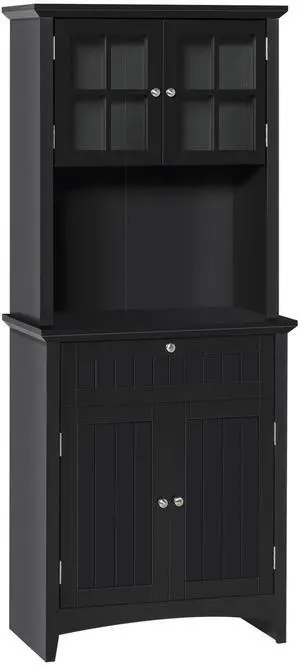 Elegant Buffet with Hutch, Kitchen Pantry Storage Cabinet with Framed Glass Door Drawer and Microwave Space, Black