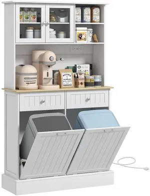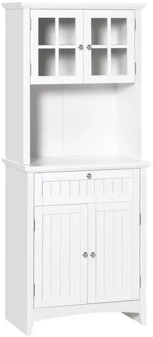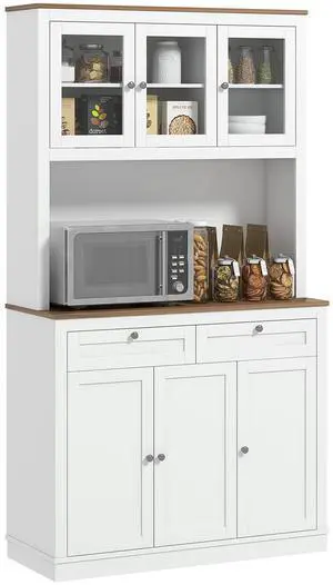 Elegant Buffet with Hutch, Kitchen Pantry Storage Cabinet with Framed Glass Door Drawer and Microwave Space, White