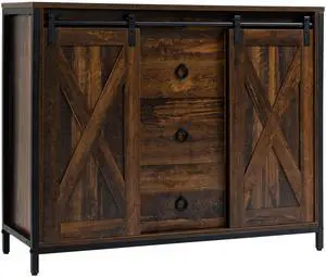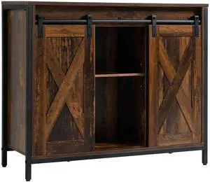Industrial Sideboard Buffet Cabinet, Coffee Bar Cabinet, Kitchen Cabinet with Sliding Barn Doors, Storage Cabinets and Adjustable Shelves for Living Room, Home Bar, Rustic Brown