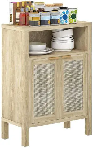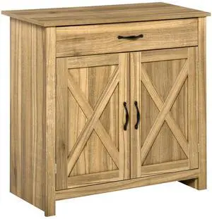 Farmhouse Sideboard Buffet Cabinet, Barn Door Coffee Bar Cabinet with Drawer and Adjustable Shelf, Kitchen Cabinet for Living Room, Entryway, Natural Wood Effect