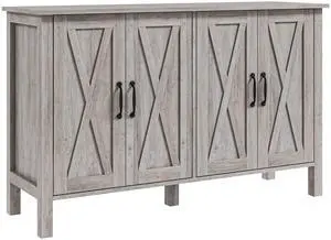Buffet Cabinet, 47" Sideboard with 4 Barn Doors and 2 Adjustable Shelves, Farmhouse Coffee Bar Cabinet, Gray Wood Grain