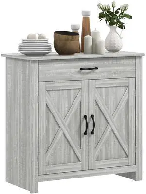 Farmhouse Sideboard Buffet Cabinet, Barn Door Coffee Bar Cabinet with Drawer and Adjustable Shelf, Kitchen Cabinet for Living Room, Entryway, Stone Gray