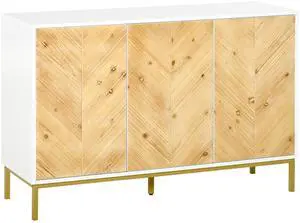 3 Door Sideboard Buffet Cabinet, Kitchen Cabinet, Coffee Bar Cabinet with Chevron Pattern, Adjustable Shelf and Metal Legs, Natural Wood