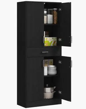 71" Kitchen Pantry Cabinet with Drawer and Adjustable Shelf, Freestanding Tall Storage Cabinet with 2 Double Door Cupboards, Distressed Black