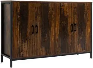 Industrial Sideboard Buffet Cabinet with Doors, Kitchen Cabinet, Coffee Bar Cabinet with Adjustable Shelves, Rustic Brown