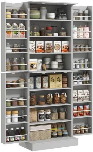 41" Kitchen Pantry Storage Cabinet, Freestanding Kitchen Cabinet with 12 Door Shelves, Double Doors, 5-tier Shelving and Adjustable Shelves, Paper Gray