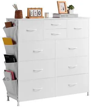 VEVOR 10 Drawer Dresser, Fabric Drawer Dresser with Fabric Bins, Closet Storage Drawers with Easy Pull Handle and Sturdy Steel Frame, Fabric Storage Tower for Bedroom, Hallway, Closet, Nursery, White