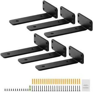 Butizone Metal Shelf Bracket 4 Pack, DIY Open Shelving, Black (7.25")