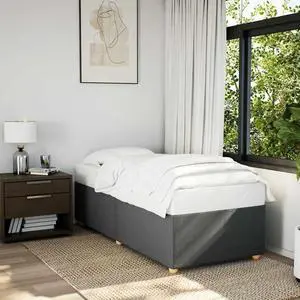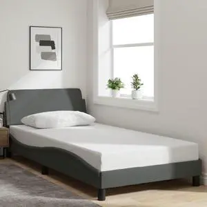 vidaXL Bed Frame Dark Grey Polyester, Metal, Plywood, Engineered wood Twin