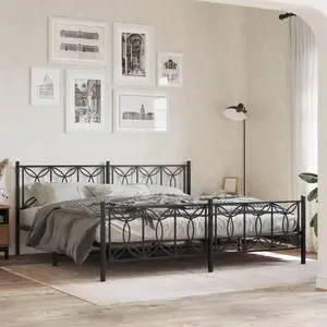vidaXL Bed Frame Black Steel Double Bed Frame Rectangular Modern