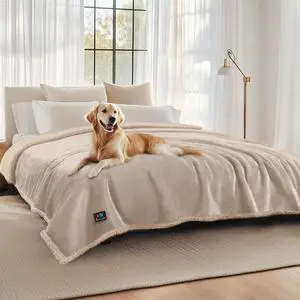 Waterproof Pet Blankets, Liquid Pee Proof Dog Blanket for Sofa Bed Couch, Reversible Sherpa Fleece Furniture Protector Cover for Small Medium Large Dogs Cats, Dark Beige King Size100" x 85"