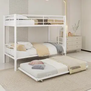 Heavy-duty Sturdy Meta Twin over Twin Bunk Bed/l/ Noise Reduced/ Safety Guardrail/No Box Spring Needed,White