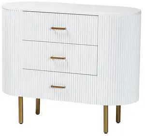 bali & pari Beyla Mid-Century White Fluted Wood and Gold Metal 3-Drawer Dresser