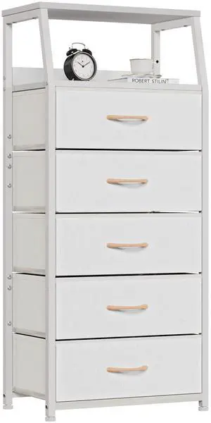 5 Drawer Chest Mobile Storage Cabinets Small Wooden Dresser with Wheels Room Organization Furniture for Office Home, White Wood