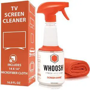 WHOOSH! Pro 16.9 fl oz Refillable TV Screen Cleaner & Microfiber Cloth - Streak-Free Cleaner for Flat Screens, OLED, LCD, Smart TV, Monitors - Non-Toxic, Odorless - Electronics Cleaning Kit