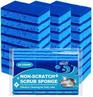 Sponges Kitchen 24pcs, Non-Scratch Scrub Dish Sponge Safe on Non-Stick Cookware, Dual Sided Cleaning Sponges for Kitchen, Household, Bathroom and More