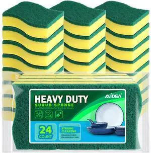 Sponges Kitchen, 24 Pack Heavy Duty Dish Sponge, Cleaning Dish Scrubber Sponge for Home and Kitchen, Stink-Free Cleaning Supplies for Pots, Pans