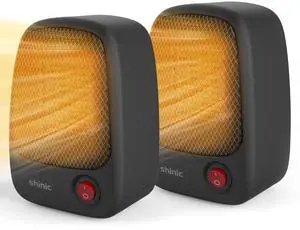 2 Pack Small Desk Heater for Office, Compact Personal Electric Heater with PTC Ceramic Fast Heating 500W, Energy Efficient for Indoor Use, Safe with Overheating & Tip-Over Protection