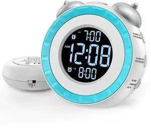 Features: 1. **Power On**: Plug in the device to a wall outlet. 2. **Sound Selection**: Press the 'Sound' button to cycle through the 25 built-in soothing sounds. 3. **Volume Adjustment**: Use the '+' and '-' buttons to adjust the volume. 4. **Timer Setting**: Press the 'Timer' button to set the SleepTimer (10-480 mins). 5. **Light Selection**: Press the 'Light' button to cycle through the 17 lighting modes and adjust brightness. 6. **Alarm Setting**: Press the 'Alarm' button to set the alarm for daily, weekdays, or weekend options. 7. **Snooze**: Press the 'Snooze' button to snooze the alarm. 8. **Bluetooth Connection**: Connect your phone via Bluetooth to play music from your library.