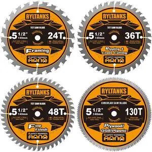 5-1/2 Inch Circular Saw Blades with 10mm Arbor, 24T for Framing&36T for Ripping and Cross Cutting&48T for Fine Finish&130T for Wood/Plywood/OSB/Plastic, 4-Pack