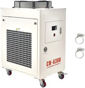 Industrial Water Chiller, CW6000, 1500W Industrial Water Cooler Cooling System with Compressor 15L Water Tank Capacity 65 L/min Max Flow Rate, for CO2 Laser Engraving Machine Cooling Machine