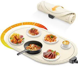 Food Warming Mat for Table & Buffet, Fast Heating Serving Pad with Adjustable Temperature & Timer, Foldable Silicone Heating Mat for Family Meals, Parties & Holiday Hosting
