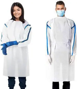 White Disposable Isolation Gown, Small. 5 Pack 35 GSM SMS PPE Gowns. Personal Protective Equipment Gown. Medical Isolation Gowns with Sleeves, Neck & Waist Ties, Elastic Wrists