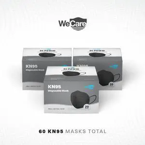 WeCare KN95 Disposable Face Mask Adult Black 20 Masks/Box 3 Boxes/Pack (TBN202934)