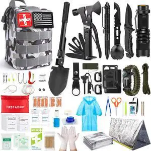 Survival Kit, 251 Pcs Survival Gear First Aid Kit with Molle System Compatible Bag and Emergency Tent, Emergency Kit for Earthquake, Outdoor Adventure, Hiking, Hunting, Gifts for Men Women