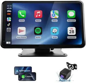 Features: 7-inch IPS HD touch screen 1080P AHD backup camera, Wireless Apple CarPlay & Android Auto Wireless Apple CarPlay & Android Auto, Plug-and-play cigarette lighter power Plug-and-play cigarette lighter power Plug-and-play cigarette lighter power, Plug-and-play cigarette lighter power Universal fit for all vehicles, Adhesive bracket for easy installation, USB, Wi-Fi, Wireless (Wireless Apple CarPlay & Android Auto) + Wired (AUX input, SD/TF card slots)