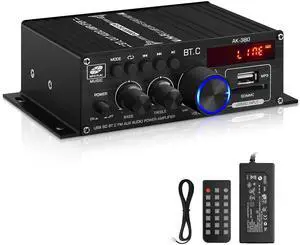 AK-380 USB SD BT.C FM AUX Audio Power Amplifier 2.0 CH 40W+40W HiFi Stereo AMP Speaker Bluetooth 5.0 Amp Receiver with 12V 5A Power Supply,FM Antenna for Car Home Bar Party