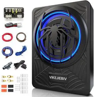 8" 600W Powered Car Subwoofer Ultra Slim Under Seat Subwoofer with Built-in Amplifier, Compact Low Profile Sub and Amp Combo for Car, Truck & Jeep Audio Systems