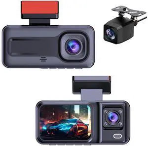 1080P Dash Camera for Car,3 Channel Dash Cam Front and Rear Inside G-Sensor, 3.16 IPS Screen, 24Hr Parking, 170°Wide Angle, Loop Recording, IR Night Vision (Dark Black)