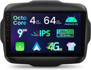 XTRONS Android 14 Car Stereo for Jeep Renegade, Octa Core 4+64GB Car Radio, 9 Inch Touch Screen GPS Navigation Bluetooth Head Unit Built-in DSP CarPlay Support 4G LTE OBD2 DVR TPMS Backup Camera