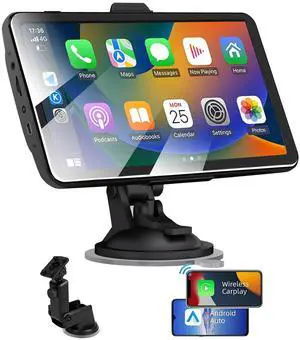 7" HD Portable Carplay Wireless Touch Screen Double Din Car Stereo Compatible Apple Carplay and Android Auto with GPS Navigation, Voice Control, Mirror Link, Bluetooth