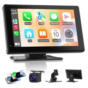 Wireless Car Stereo Compatable with  CarPlay and Android Auto,7" HD Portable Bluetooth CarPlay Touch Screen for Car,with Backup Camera Car Play for All Cars